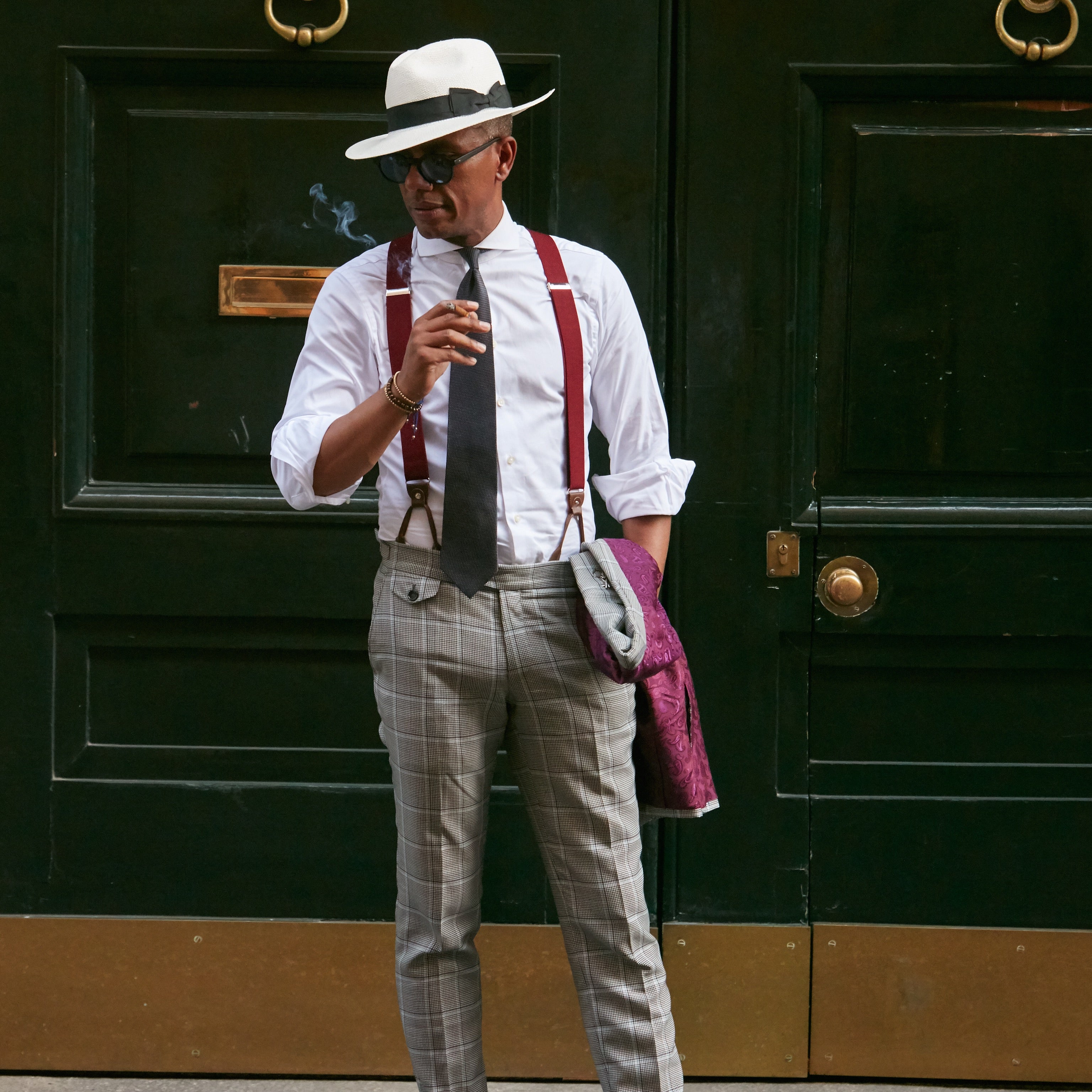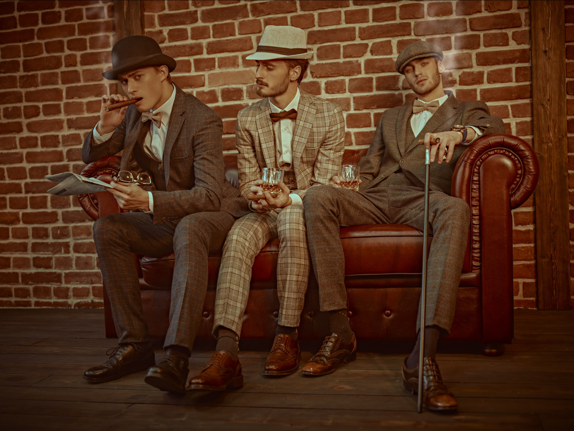 The complete vintage look: stylish headwear, elegant vests, striking accessories, elegant socks.