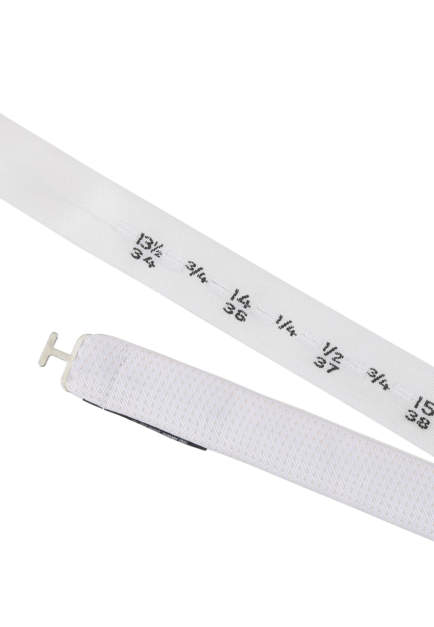 Wähle deine Kragengröße am Band aus, befestige den Haken an der passenden Stelle und lege die Fliege anschließend um den Hals.