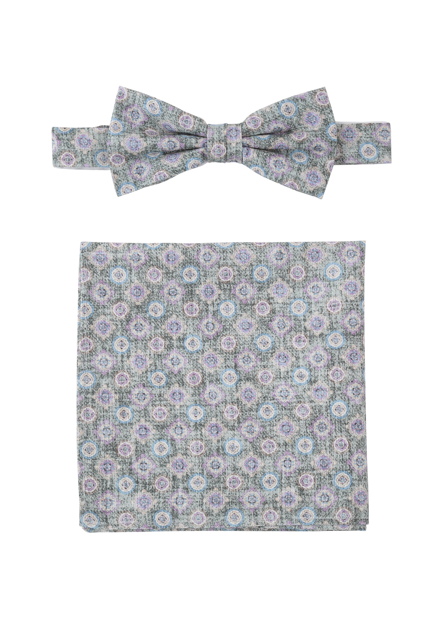 Set Fliege + Tuch Medaillon - Hellgrau