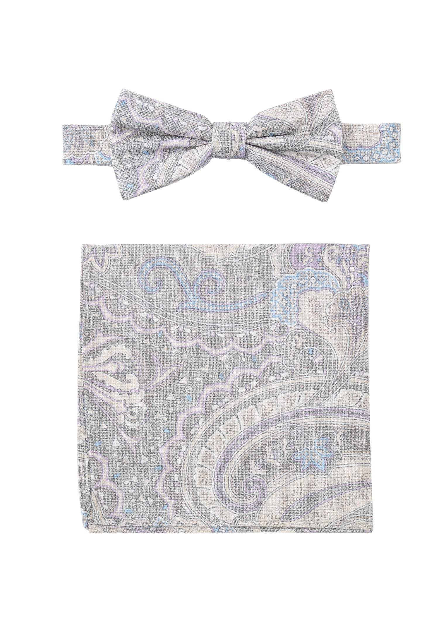 Set Fliege + Tuch Paisley - Hellgrau