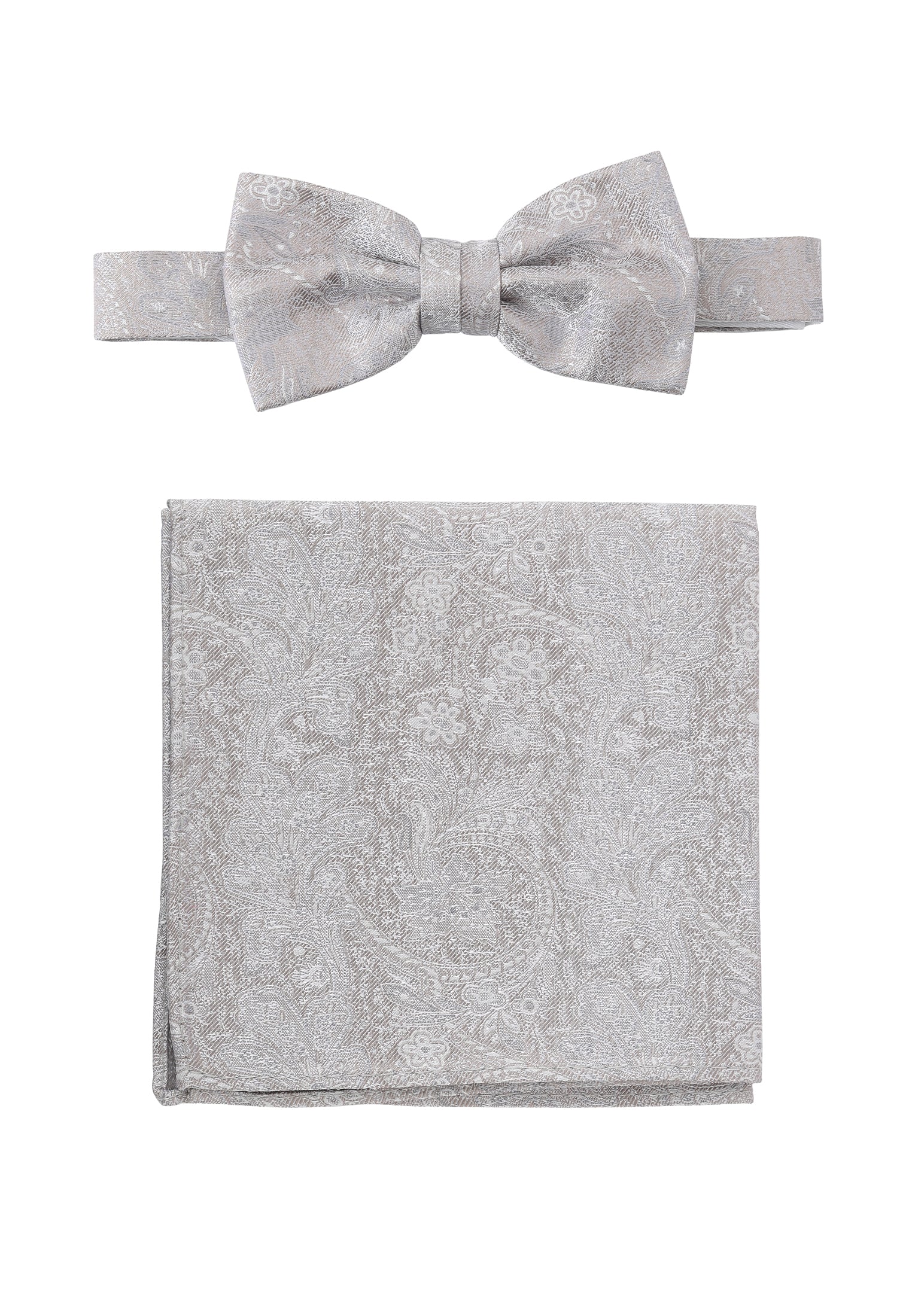 Set Fliege + Tuch Paisley - 100% Seide - Hellbeige