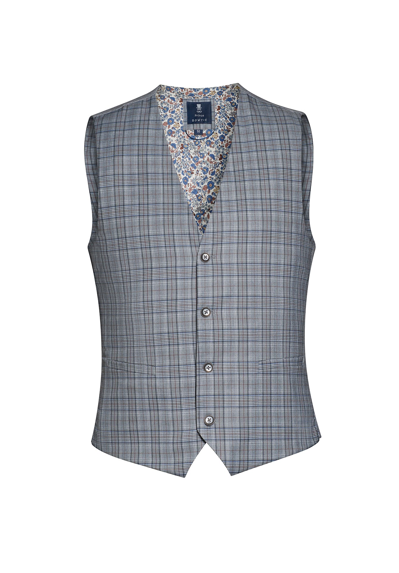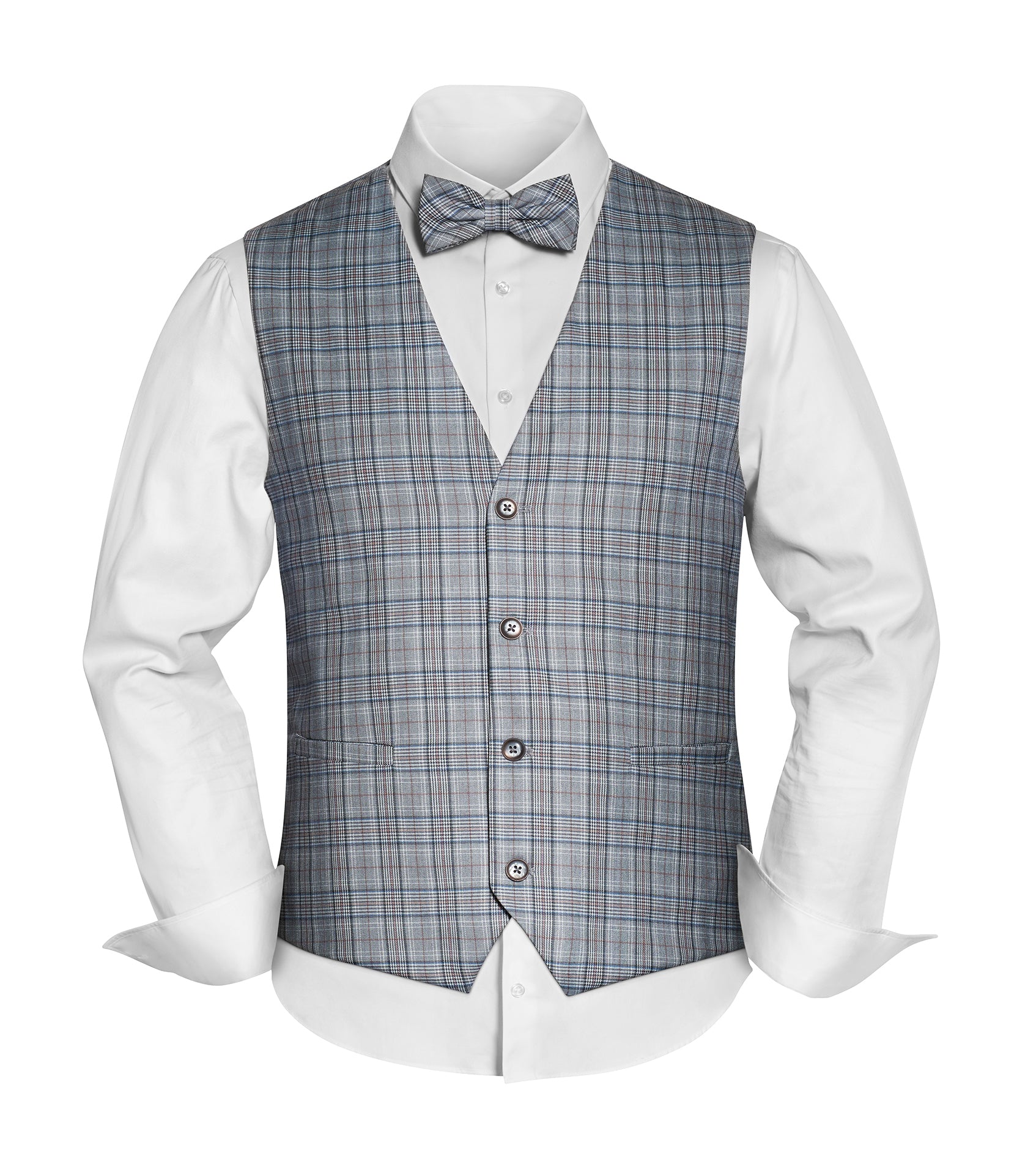 Secret Sale - Set aus Weste, Fliege & Einstecktuch im Karomuster - Grau/Blau