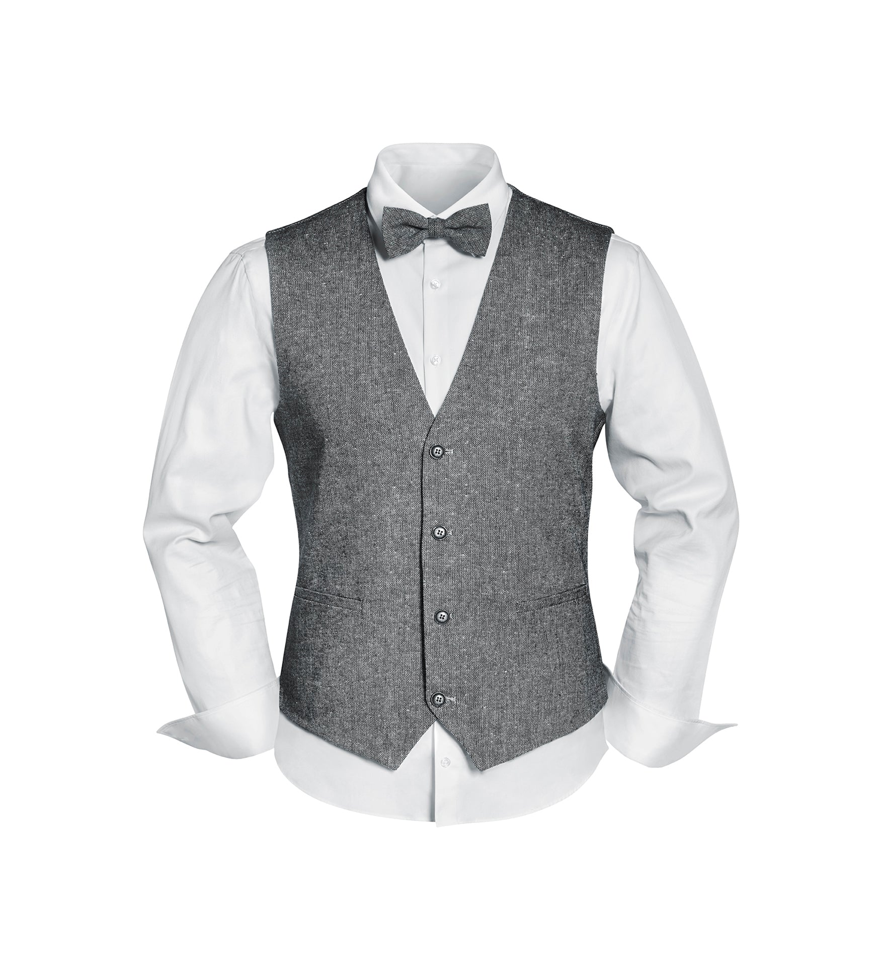 Vintage-Outfit inklusive Weste, Fliege & Einstecktuch in Wollmischung - Grau